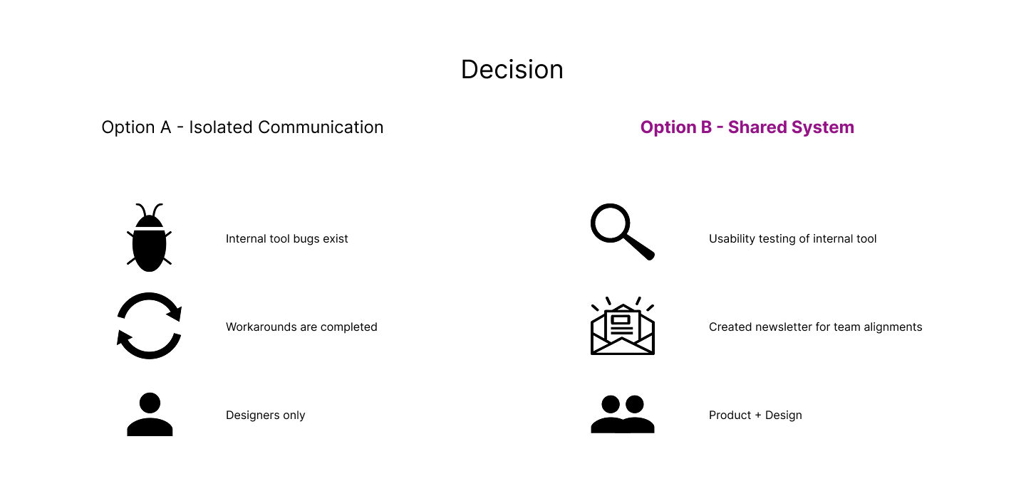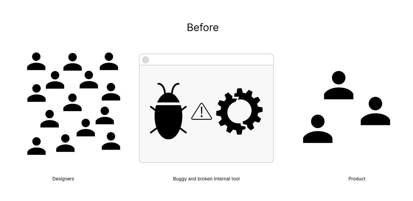 Improved a buggy and unintuitive internal design tool by introducing usability testing, shared communication, and workflow optimizations to reduce friction and speed delivery.
